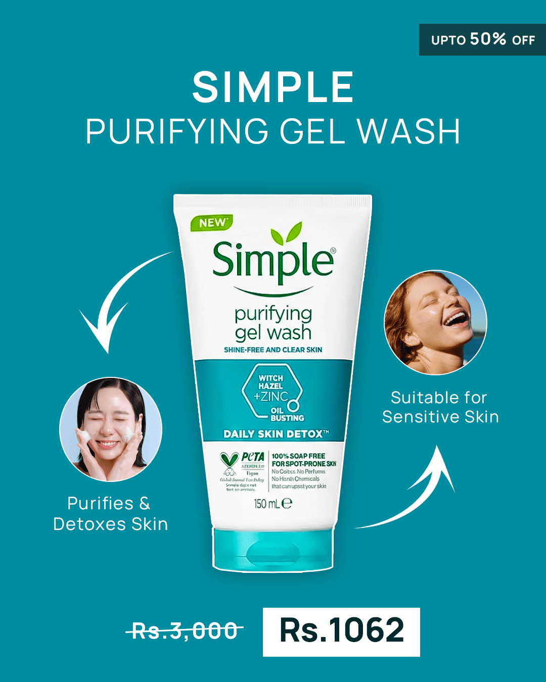 Achieve a fresh, shine-free complexion with the Simple Daily Skin Detox Purifying Gel Wash. This lightweight gel cleanser is specially formulated for oily and blemish-prone skin, working to deeply cleanse pores, remove excess oil, and eliminate impurities without stripping the skin of its natural moisture.